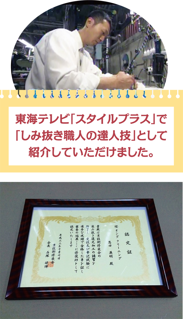 - ・「ご依頼のしみ抜きは、確実に落とす」