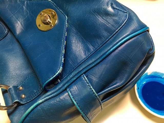 バックの四隅。 擦れて革が傷付いても、この様な感じで直せます。(^-^)